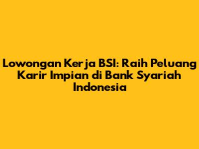 Lowongan Kerja BSI: Peluang Karir Menarik Di Bank Syariah Indonesia