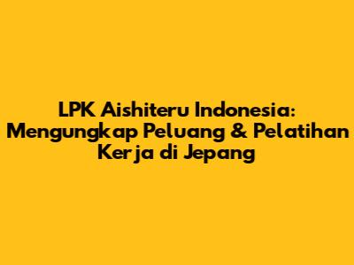 LPK Aishiteru Indonesia: Pelatihan & Peluang Kerja Di Jepang