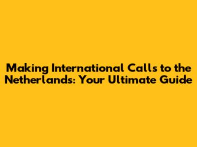 Making International Calls To The Netherlands: Your Ultimate Guide