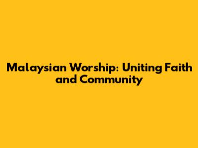 Malaysian Worship: Uniting Faith And Community
