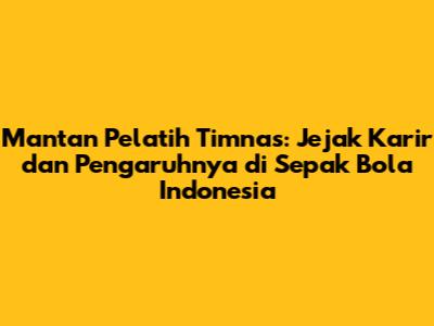 Mantan Pelatih Timnas: Jejak Karir Dan Pengaruhnya Di Sepak Bola Indonesia