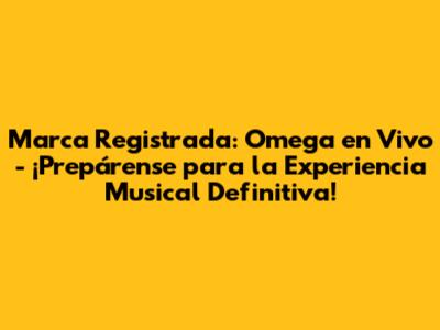 ¡Hola a todos los amantes de la buena música! Prepárense porque Marca Registrada está a punto de ofrecerles una experiencia que los dejará sin aliento: Omega en Vivo. Este no es solo un concierto, amigos, es una inmersión total en el mundo de la música, una celebración de la energÃa y la pasión que Marca Registrada transmite en cada una de sus presentaciones. Si son fanáticos del género, o simplemente buscan una noche inolvidable, quédense conmigo, porque les voy a contar todo lo que necesitan saber sobre este evento épico.