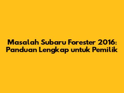 Masalah Subaru Forester 2016: Panduan Lengkap Untuk Pemilik
