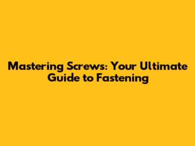 Mastering Screws: Your Ultimate Guide To Fastening