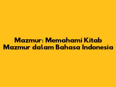 Mazmur: Memahami Kitab Mazmur Dalam Bahasa Indonesia