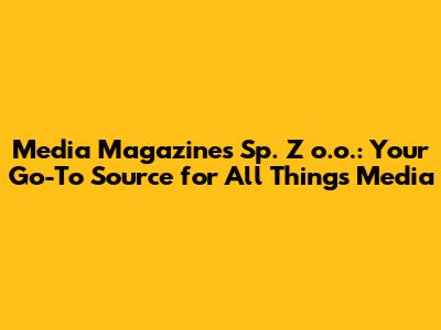 Media Magazines Sp. Z O.o.: Your Go-To Source