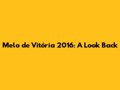 Melo De Vitória 2016: A Look Back