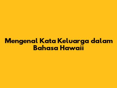 Mengenal Kata Keluarga Dalam Bahasa Hawai'i