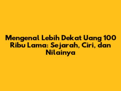 Mengenal Lebih Dekat Uang 100 Ribu Lama: Sejarah, Ciri, Dan Nilainya