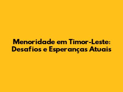 Menoridade Em Timor-Leste: Desafios E Esperanças Atuais