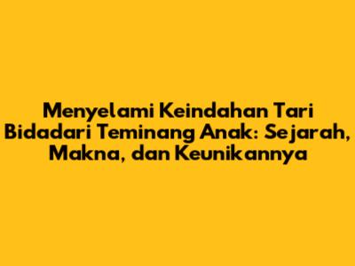 Tari Bidadari Teminang Anak merupakan sebuah tarian tradisional yang kaya akan sejarah dan makna budaya. Kalian pasti penasaran banget kan tentang tarian yang satu ini? Nah, artikel ini bakal mengupas tuntas segala hal yang perlu kalian ketahui tentang Tari Bidadari Teminang Anak. Mulai dari sejarahnya yang menarik, makna mendalam di balik setiap gerakan, hingga keunikan kostum dan musik pengiringnya. Dijamin, setelah membaca artikel ini, kalian akan semakin cinta dan bangga dengan warisan budaya Indonesia!