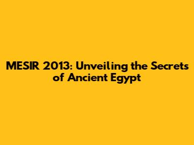 MESIR 2013: Unveiling The Secrets Of Ancient Egypt