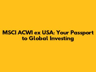Global Investing: Is the MSCI ACWI ex USA Right for You?