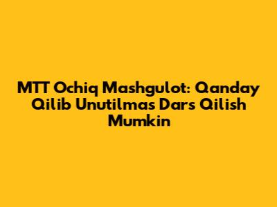 MTT Ochiq Mashg'ulot: Qanday Qilib Unutilmas Dars Qilish Mumkin