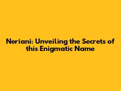 Neriani: Unveiling The Secrets Of This Enigmatic Name