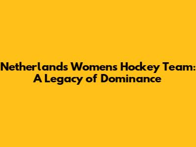 Netherlands Women's Hockey: Dominance & History