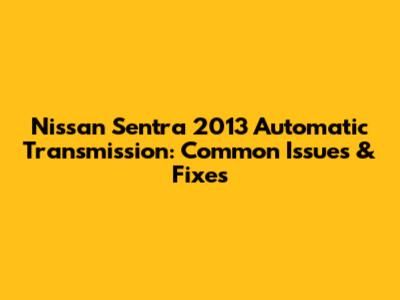 Nissan Sentra 2013 Automatic Transmission: Common Issues & Fixes