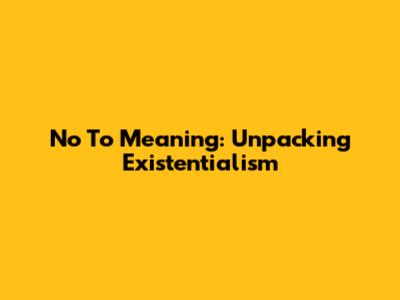 No To Meaning: Understanding The Concept