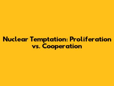 Nuclear Temptation: Proliferation Vs. Cooperation