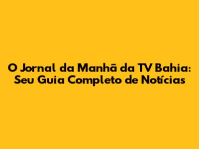 O Jornal Da Manhã Da TV Bahia: Notícias E Cobertura