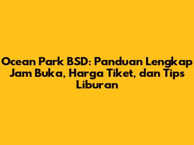 Ocean Park BSD adalah salah satu destinasi wisata air favorit di kawasan Tangerang Selatan. Buat kalian yang berencana menghabiskan waktu liburan di sini, pasti penasaran kan sama jam buka Ocean Park BSD hari ini? Selain itu, informasi tentang harga tiket, wahana seru, dan tips liburan juga penting banget buat bikin pengalaman liburanmu makin menyenangkan. Yuk, simak panduan lengkapnya!