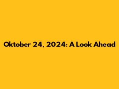 Oktober 24, 2024: A Look Ahead