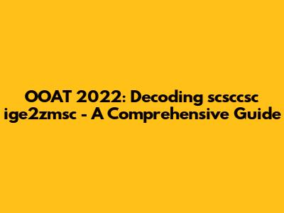 OOAT 2022: Decoding Scsccsc Ige2zmsc - A Comprehensive Guide