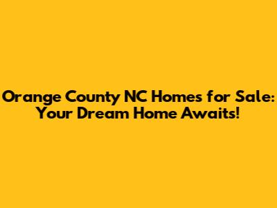 Orange County NC Homes For Sale: Your Dream Home Awaits!