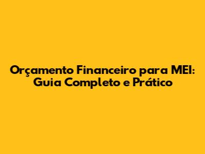 Orçamento Financeiro Para MEI: Guia Completo E Prático