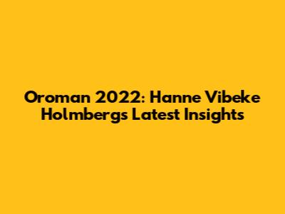 Oroman 2022: Hanne Vibeke Holmberg's Latest Insights