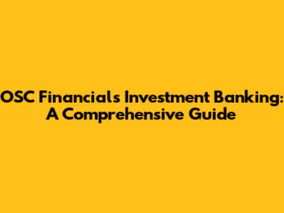 OSC Financials: Your Guide To Investment Banking