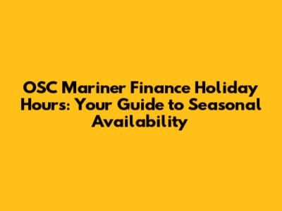 OSC Mariner Finance Holiday Hours: Your Guide To Seasonal Availability