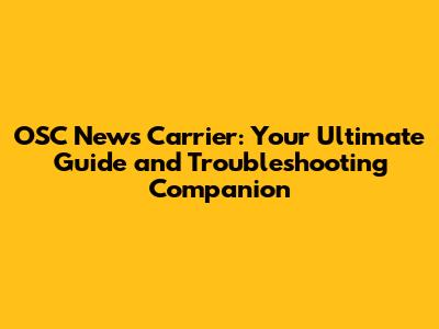 OSC News Carrier: Everything You Need To Know
