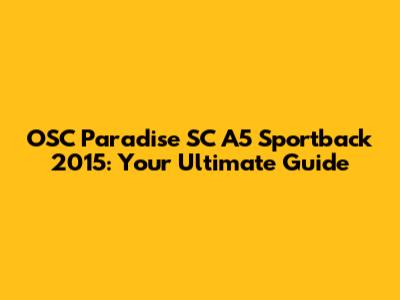 Hey there, car enthusiasts! Let's dive deep into the world of the OSC Paradise SC A5 Sportback 2015. This beauty isn't just a car; it's a statement. And if you're lucky enough to own one, or even if you're just dreaming, this guide is for you. We'll explore everything from its sleek design and performance to what makes it stand out in a crowd. Buckle up, because we're about to take a ride through the ins and outs of this incredible machine.