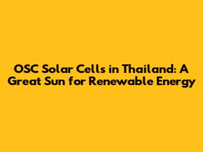 OSC Solar Cells In Thailand: A Great Sun For Renewable Energy