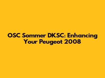 Hey guys, let's dive into something super important for all you Peugeot 2008 owners out there: the OSC Sommer DKSC. This isn't just any old part; it's a critical component that can seriously impact your car's performance and longevity. In this article, we'll break down everything you need to know about the OSC Sommer DKSC, specifically for your Peugeot 2008. We'll explore what it does, why it matters, and how you can ensure you're getting the best possible performance from your ride. So, buckle up, and let's get started!