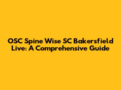 OSC Spine Wise SC Bakersfield Live: Comprehensive Guide