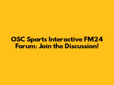 The OSC Sports Interactive FM24 Forum is more than just a place to talk about the game; it's a community where you can connect with other passionate players, learn from their experiences, and share your own. So, what are you waiting for? Join the forum today and become part of the FM24 family!