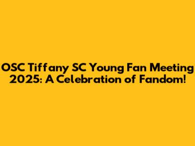 Get ready, guys! The OSC Tiffany SC Young Fan Meeting 2025 is shaping up to be the most unforgettable event for all you dedicated fans out there! We're talking about a day filled with excitement, exclusive content, and unparalleled opportunities to connect with Tiffany SC and fellow fans. This isn't just another meet-and-greet; it's a carefully curated experience designed to immerse you in the world of Tiffany SC and create lasting memories. Imagine being in a room buzzing with energy, surrounded by people who share your passion and admiration for Tiffany SC. This fan meeting is more than just an event; it's a community coming together to celebrate their shared love and enthusiasm. We’re pulling out all the stops to make this a truly special occasion, with interactive sessions, behind-the-scenes glimpses, and maybe even a surprise or two from Tiffany SC herself! So mark your calendars, clear your schedules, and prepare to dive headfirst into the ultimate fan experience. This is your chance to be a part of something truly special, to create memories that will last a lifetime, and to strengthen the bonds of our amazing fan community. The OSC Tiffany SC Young Fan Meeting 2025 is more than just an event; it's a celebration of fandom, a tribute to Tiffany SC, and an opportunity to connect with like-minded individuals who share your passion. Get ready to be amazed, inspired, and utterly thrilled!