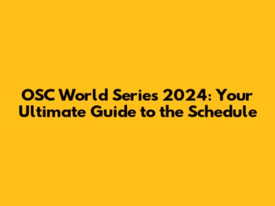 OSC World Series 2024 Schedule: Dates, Times, And More!