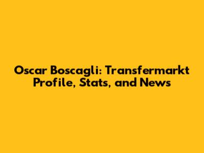 Oscar Boscagli: Transfermarkt Profile, Stats, And News