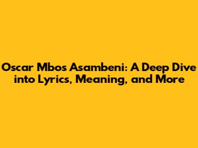 Oscar Mbo's 'Asambeni': Lyrics, Meaning & Deep Dive