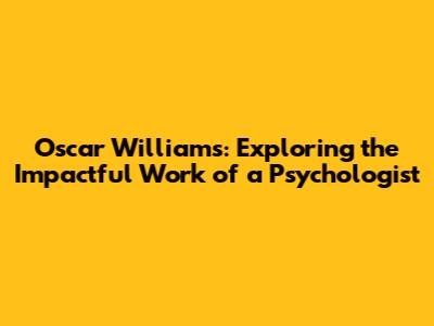 Oscar Williams: Exploring The Impactful Work Of A Psychologist