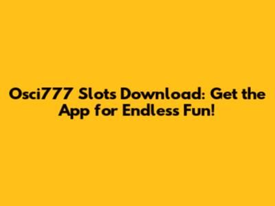 Osci777 Slots Download: Get The App For Endless Fun!