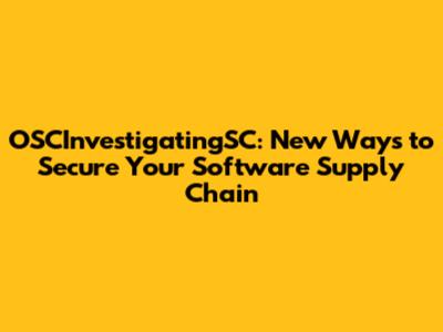 OSCInvestigatingSC: New Ways To Secure Your Software Supply Chain