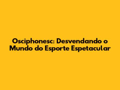 Osciphonesc e o Esporte Espetacular: Uma Parceria de Sucesso