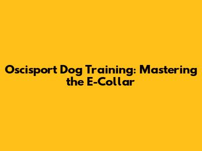 Oscisport Dog Training: Mastering The E-Collar