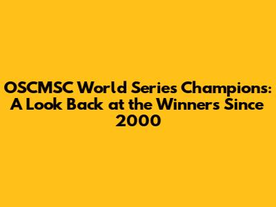 Hey sports fanatics! Ever wondered about the OSCMSC World Series champions since the year 2000? Well, buckle up, because we're about to dive deep into the thrilling world of competitive gaming and celebrate the teams that have etched their names in esports history. We'll be taking a trip down memory lane, revisiting the moments of glory, the nail-biting finishes, and the sheer talent that has defined the World Series. Get ready to relive some incredible victories and maybe even discover a new favorite team or player. It's time to get your game face on, guys, because we're about to embark on an epic journey through the annals of OSCMSC World Series history. From the early days of online competition to the modern era of packed arenas and global streaming, the evolution of OSCMSC has been nothing short of spectacular. This article is your ultimate guide to the champions, the rivalries, and the unforgettable moments that have made the World Series a must-watch event for gamers around the globe. So, let's jump right in and explore the legacy of these gaming titans!