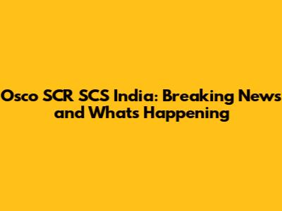 Osco SCR SCS India: Latest News & Updates
