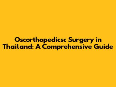 Oscorthopedicsc Surgery In Thailand: A Comprehensive Guide